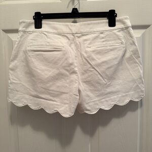 White Scalloped Chino Shorts Size 8 3.5” Inseam Color is off in pictures. Shorts are a true white.