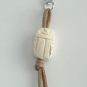 Hand Crafted Egyptian Scarab Key Chain. It can also work as a Purse Charm. The scarab is a beetle that held Symbolic Meaning for Ancient Egyptians representing resurrection, regeneration, and the cycle of life. It was a manifestation of the Sun God Khepri, pushing the sun across the sky. It has Egyptian symbols, or hieroglyphics, on the back. The tassel is Vegan Suede in beige. Unique, Unisex Gift, Mothers Day, Fathers Day, Egypt Aficionado.