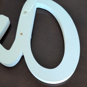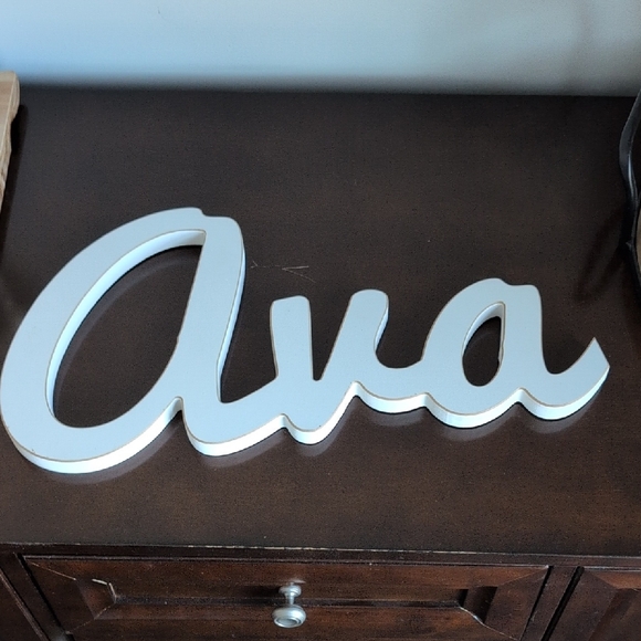 Elegant white script name sign. Perfect for home decor. Good condition.