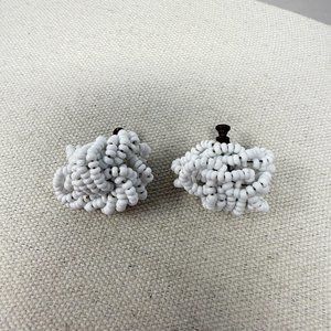 White Seed Bead Knot Earrings Vintage Screw Back Classic Retro