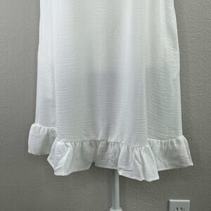 White Semi Sheer Casual Sleeveless Knee-Length Ruffle Mini Shift Dress Medium NWT