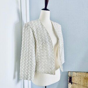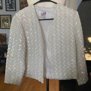White Sequin Crop Jacket size 8 medium Caron of Chicago