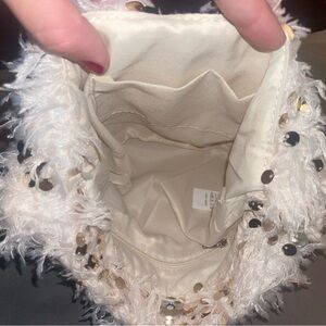 Elevate your style with this chic cream sequin shoulder bag. Ideal for adding a touch of sparkle to any ensemble.