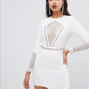 White long sleeve sequin and mesh detail bodycon dress. Perfect for a night out or a party! Great condition, only worn once.
