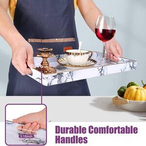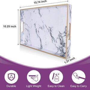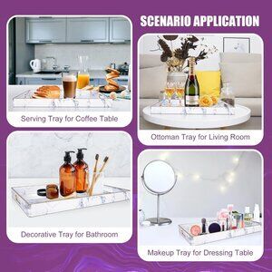 Multipurpose Serving Trays Designed for display and storage, this white marble serving tray can be used as a decorative tray, makeup tray, jewelry tray, service tray and desktop organization tray.This serving tray can also be used as a storage box for small items such as keys or TV remote controls. Also perfect for serving snacks, breakfast lunch or dinner.