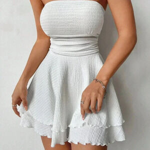 White Sexy Women's And Versatile Texture Fabric Strapless Cute Dress