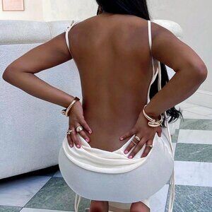 White Sexy Women's Draped Collar Tie Shoulder Cami Dress