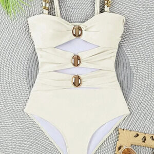 White Sexy Women's Hollow Out Solid Color Daily One-Piece Swimsuit