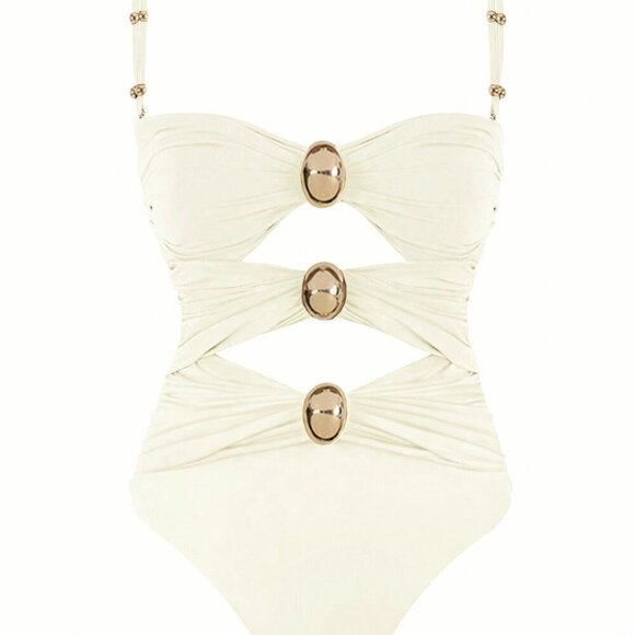 White Sexy Women's Hollow Out Solid Color Daily One-Piece Swimsuit