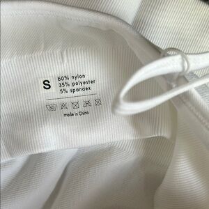This white athletic wear set features a high-waisted design for optimal support and a flattering silhouette. Crafted from soft, stretchy fabric, it ensures comfort and flexibility, perfect for both lounging and everyday wear.