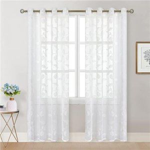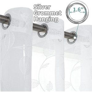 🧿Package Includes: You will receive 2 exquisite white sheer curtains, each panel measuring 52W x 84L, featuring 8 silver metal grommets at the top, making them compatible with curtain rods with a diameter of less than 1.6 inches. Each one is decorated with delicate embroidered white leaf patterns. Hanging these semi sheer curtains is a breeze, and they glide effortlessly.