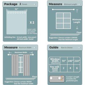 🧿Tips: Keep in mind that each curtain's size is measured when fully unfolded. To ensure the desired decorative and functional effect, the total width of the curtains should be at least twice the width of your window, and the curtain length should exceed the window's height.
