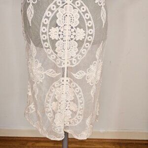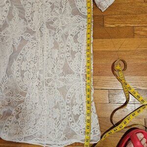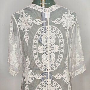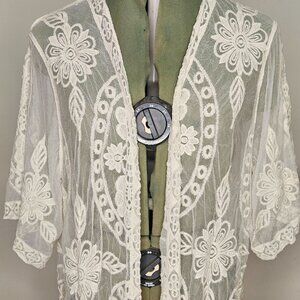 White Sheer Floral Lace Kimono Cardigan Cover Up Open Front 3/4 Sleeve S-M