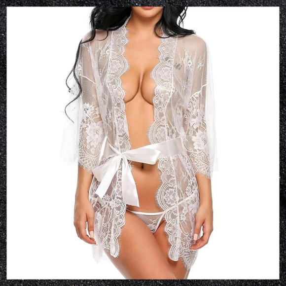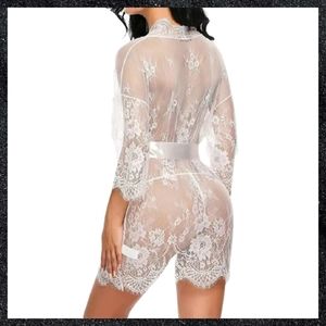 White Sheer Floral Lace Robe