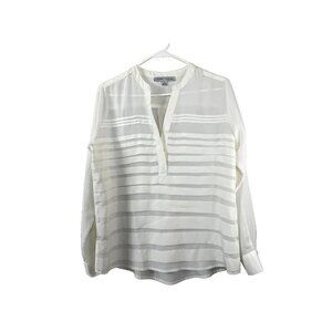 White Sheer Pleated Coastal S Blouse Elegant Lightweight Minimalist Resortwear