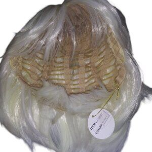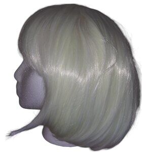 Pre-owned White Short Bob Wig with Bangs, in good condition. Please see all photos for wigs general pre-owned condition and measurements.
