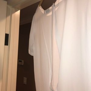 Classy 100% Polyester white short sleeve blouse with peekaboo back. Leans on the sheer side and Size S=4-6.