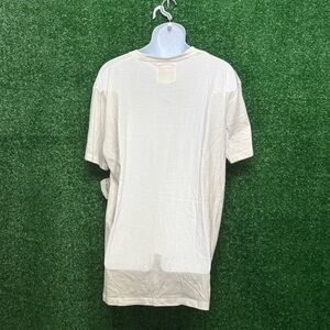 This white short sleeve tee showcases a stylish graphic design on the front, perfect for adding flair to your casual look. Crafted from soft cotton, it ensures comfort and breathability throughout the day. The classic crew neck and new condition make it a versatile wardrobe staple.