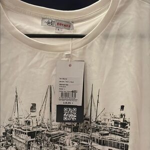 This white short sleeve tee features a striking architectural graphic on the front, adding a touch of urban flair to your casual look. Made from soft cotton, it offers comfort and style for everyday wear.