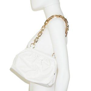 White Shoulder Dumpling Mini Bag Gold Chain Handler Bottega Veneta Style Сapacious Comfortable Everyday Influencer Celebrity