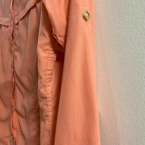 Coral button-up shirt with a classic collar. Lightweight and breathable fabric. Outdoor Fishing