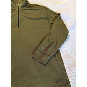 Men's 1/4 zip pullover shirt. Brand is White Sierra. Color is a thin striped alternating moss green with lime green. In Great pre-owned condition. Size XL. Measurements are in pictures. Stretchy and very soft & comfortable!