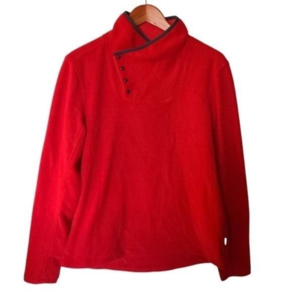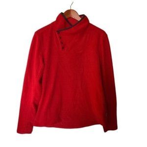 White Sierra Red Fleece Snap Neck Buttons Pullover size L Large