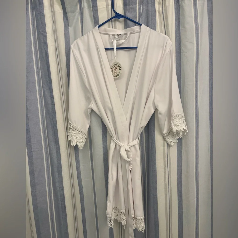 White silk robe purchased off Etsy to wear on my wedding day. It ran bigger than expected so i didn’t use it. It’s double lined, so it’s not see through and great quality.