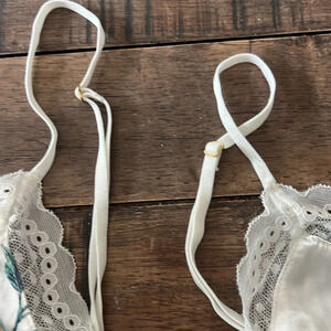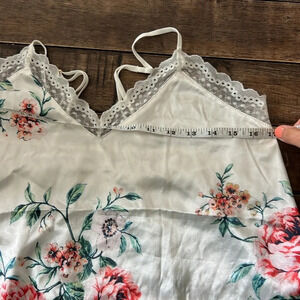 White Silky Sexy Floral Pajamas (Top & Bottom) Size Large. No name brand tag. Such a cute pj set. Adjustable straps