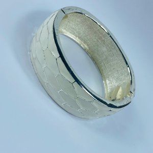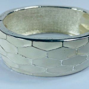 White Silver Color Clamper Style Wide Bangle Bracelet Women Honeycomb Design. Unbranded.