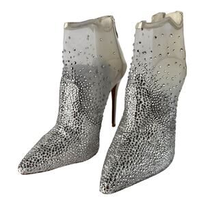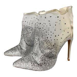 White Silver Rhinestone Ankle Boots Stilettos High Top Mesh wedding Size 7.5