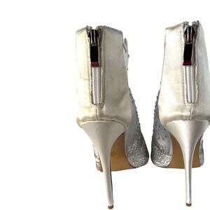 White Silver Rhinestone Ankle Boots Stilettos High Top Mesh Wedding Size 7.5