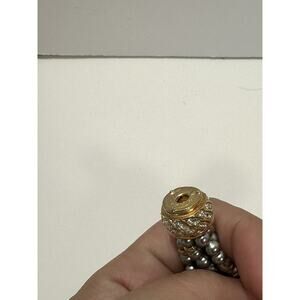 White & Silver-Blue Faux Pearl Six Strand Necklace Chocker Vintage Etch 2 Prym