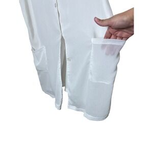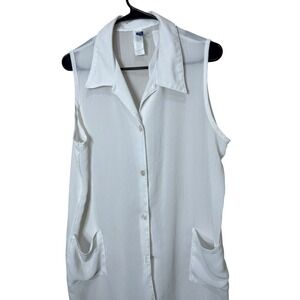 White Sleeveless Duster Top Christina Sheer Button Down Pockets