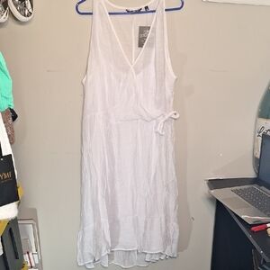 Elegant white sleeveless wrap dress. Perfect for summer outings.