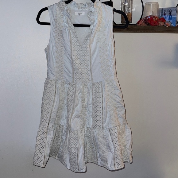 Elegant white mini dress with intricate detailing. Perfect for any occasion.