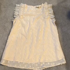 Elegant white sleeveless dress with ruffle details. Perfect for any occasion.