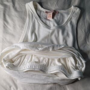 Simple white sleeveless tank top. Perfect for layering or casual wear.