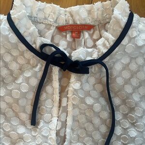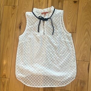 Chic white sleeveless top with a navy bow detail. Perfect for a stylish look.