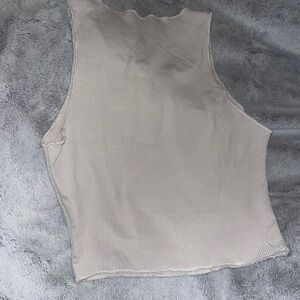 White sleeveless top featuring a colorful 'Relax Hawaii' print with palm trees and sunset design.