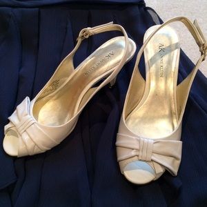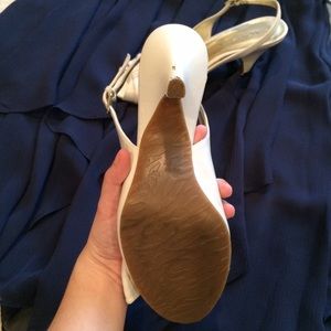 Reasonable offers only. White leather open toes slingback heels with bow on toe. Small scrape on back of left heel. 🚫NO TRADES🚫