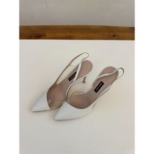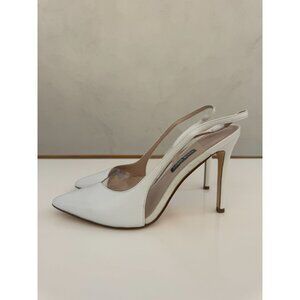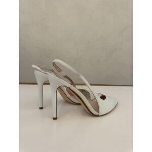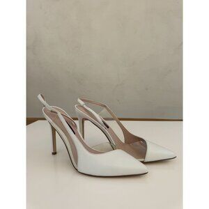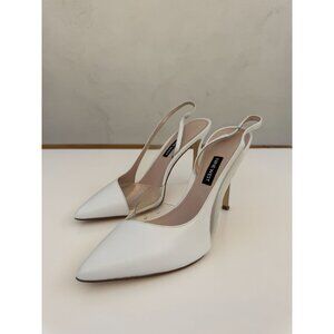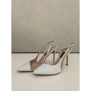 White Slingback Pointed Toe High Heels With Transparent Panel