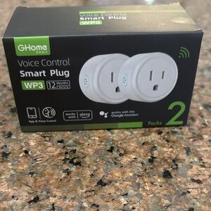 Upgrade your home with the Plug. This white smart plug offers voice control compatibility with Alexa and Google Assistant, making it perfect for any smart home setup.