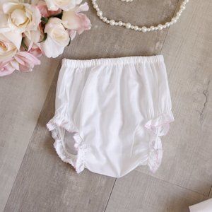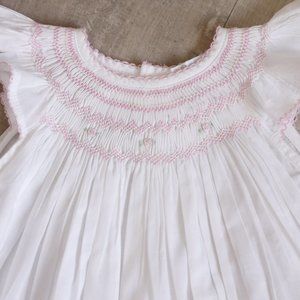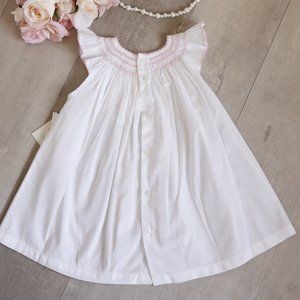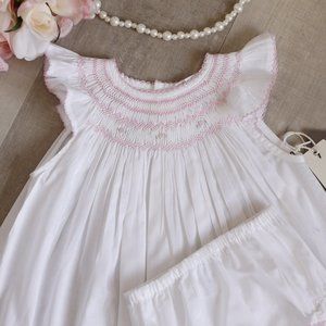 White Smocked Dress and Diaper Cover 100% Cotton Pink Embroidery Boutique NWT