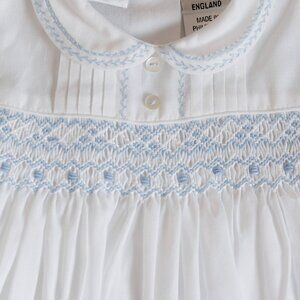 White Smocked Heirloom Dress Blue Embroidery Sarah Louise 3 Months Portrait NWT