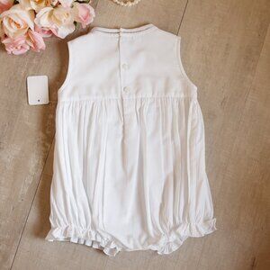 White Smocked Romper Pink Embroidery Feltman Brothers Pin Tucks 9 Months NWT