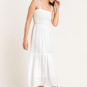 White Smocked Tiered Midi Dress