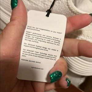 Stylish white sneakers. Comfortable and trendy. Perfect for casual wear. These are slip on very comfortable. They are a true eight I was told I’m an 8 1/2. I was told to size down and I should’ve sized up.