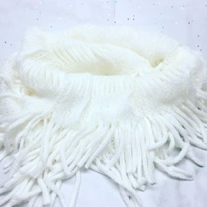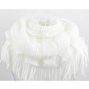 Super soft and comfortable infinity scarf featuring lattice tassel. Feel warm and cozy with this baby on. Vamp up any outfit by throwing on a trendy scarf.