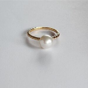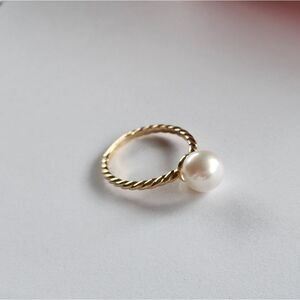 White South Sea Pearl Rope Ring / 14k Yellow Gold Size 7
